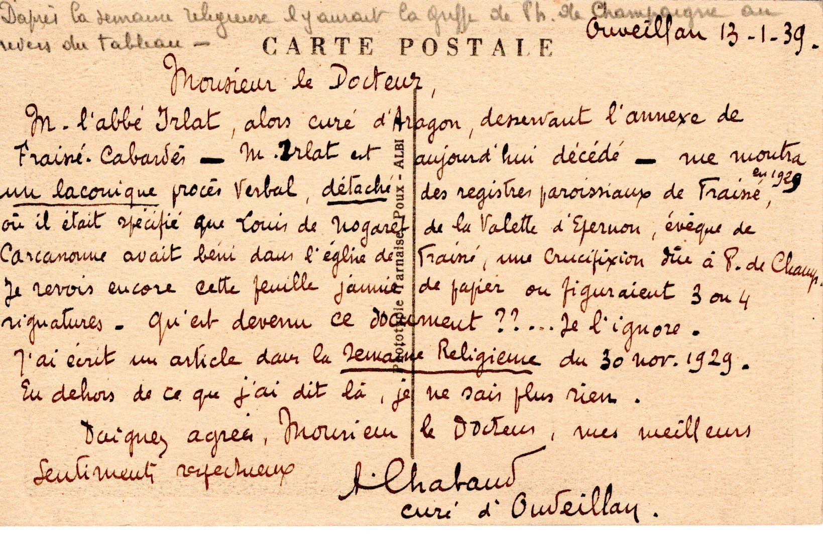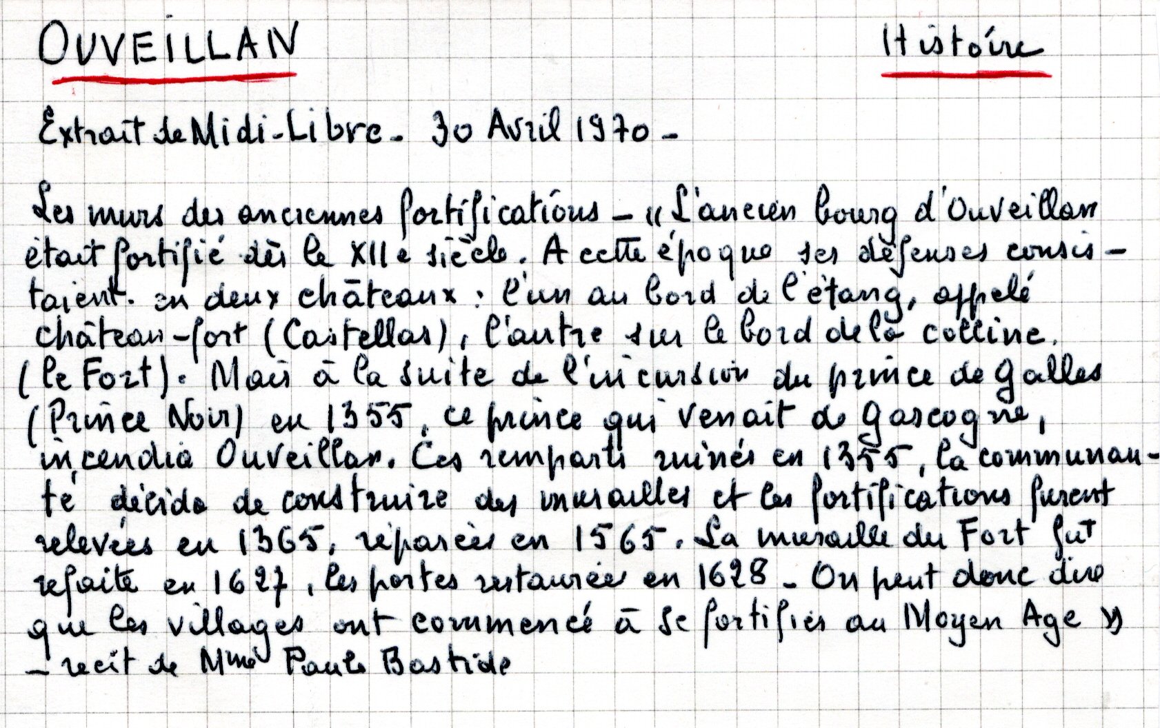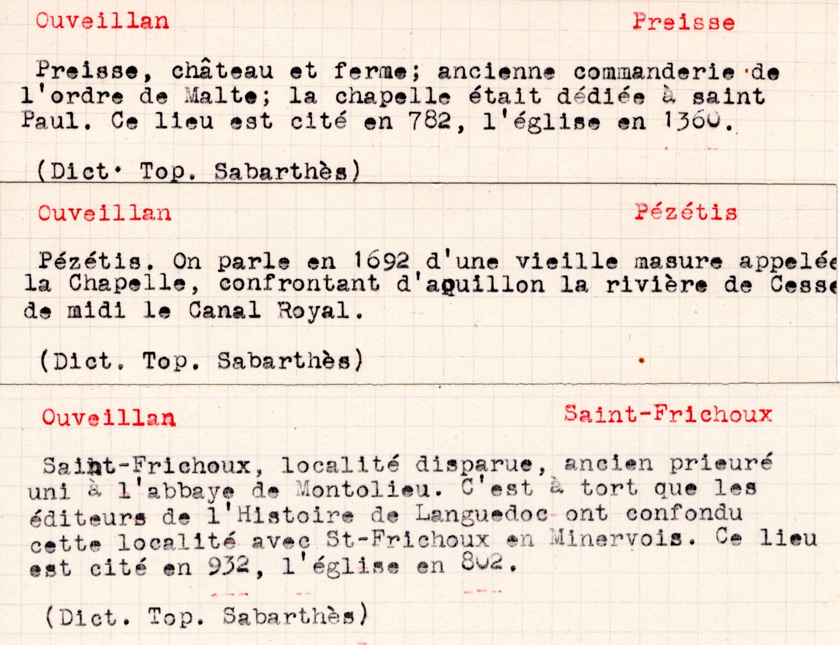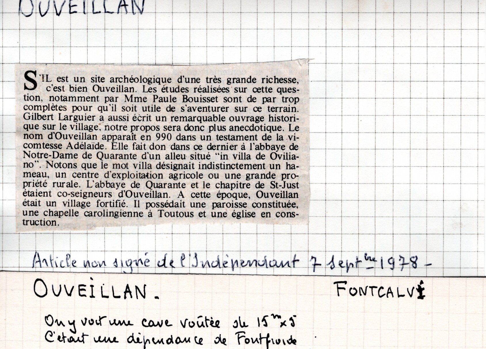 | Mémoires de la cure et des curés d’Ouveillan | Larguier G. | Ouveillan | Note d’histoire audoise | 1978 | T. LXXVIII | p. 94 |