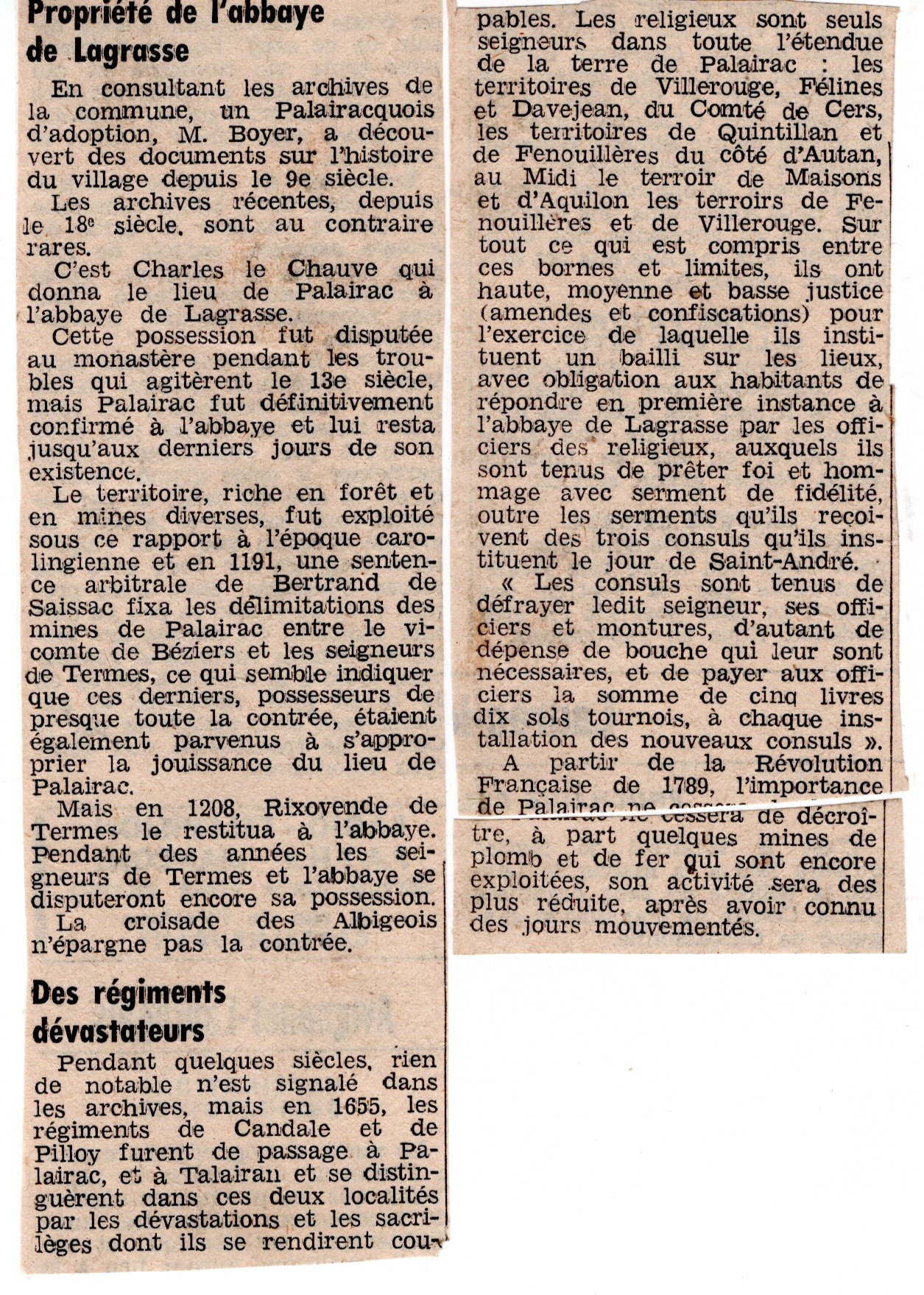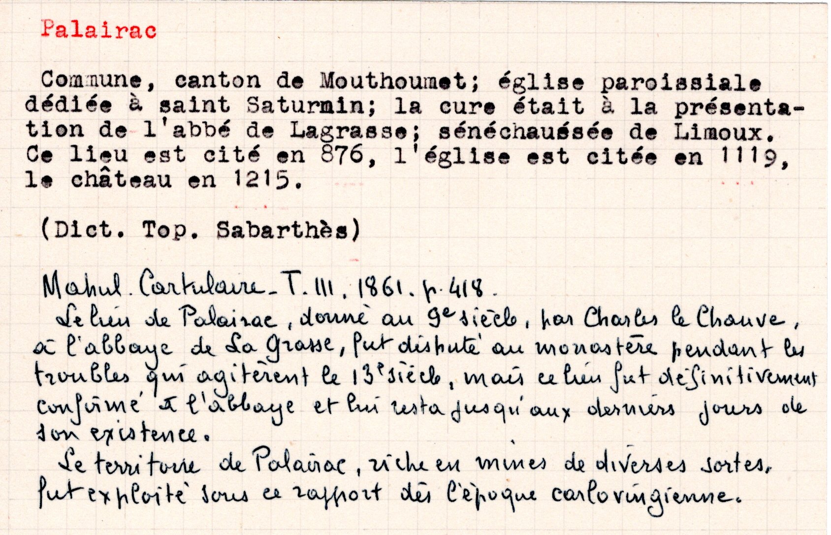 | Habitats, mines et sites de réduction antiques à Palairac | Langlois G. | Palairac | Note d’archéologie | 2010 | T. CX | p. 161 |