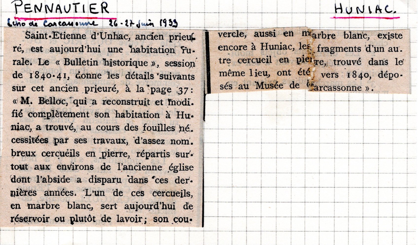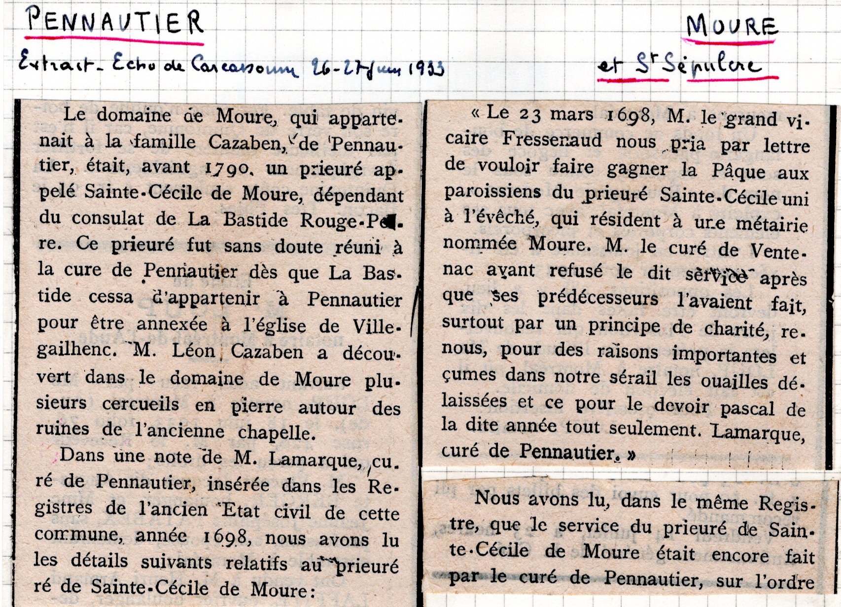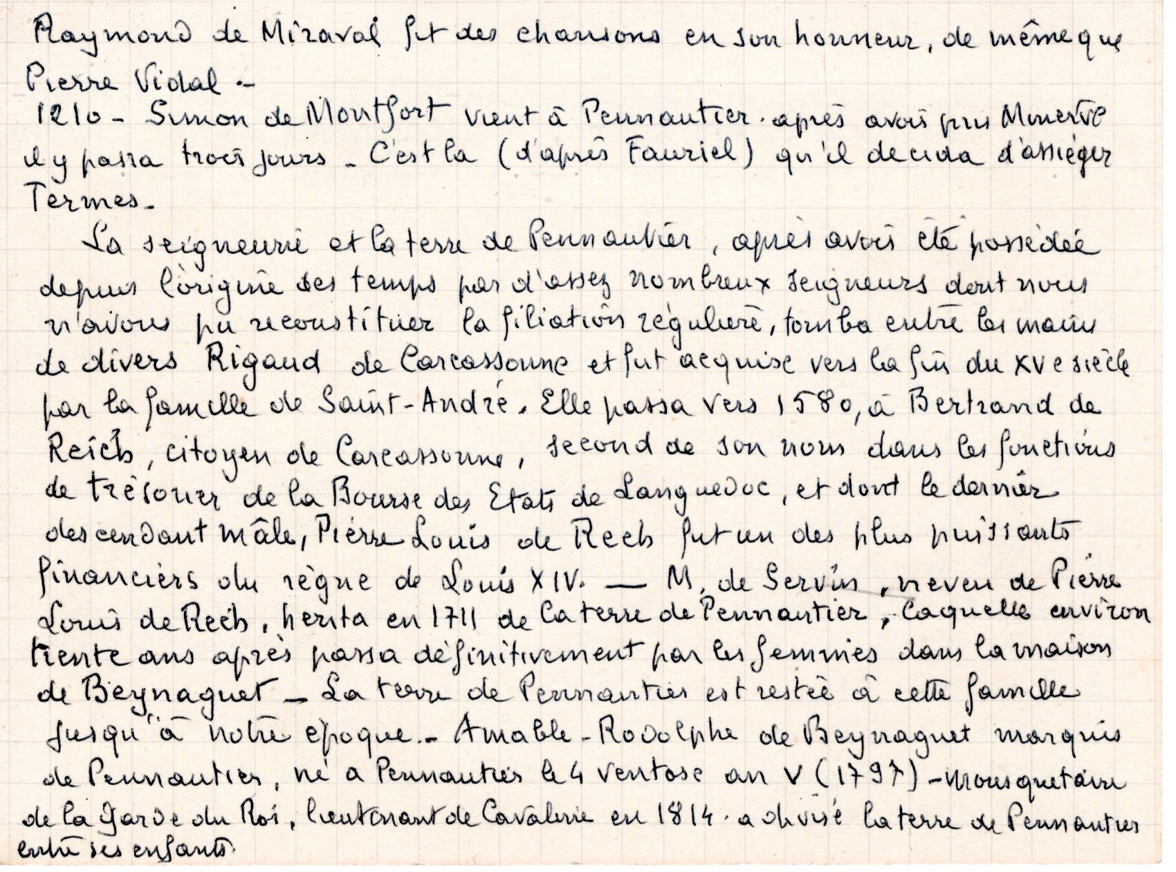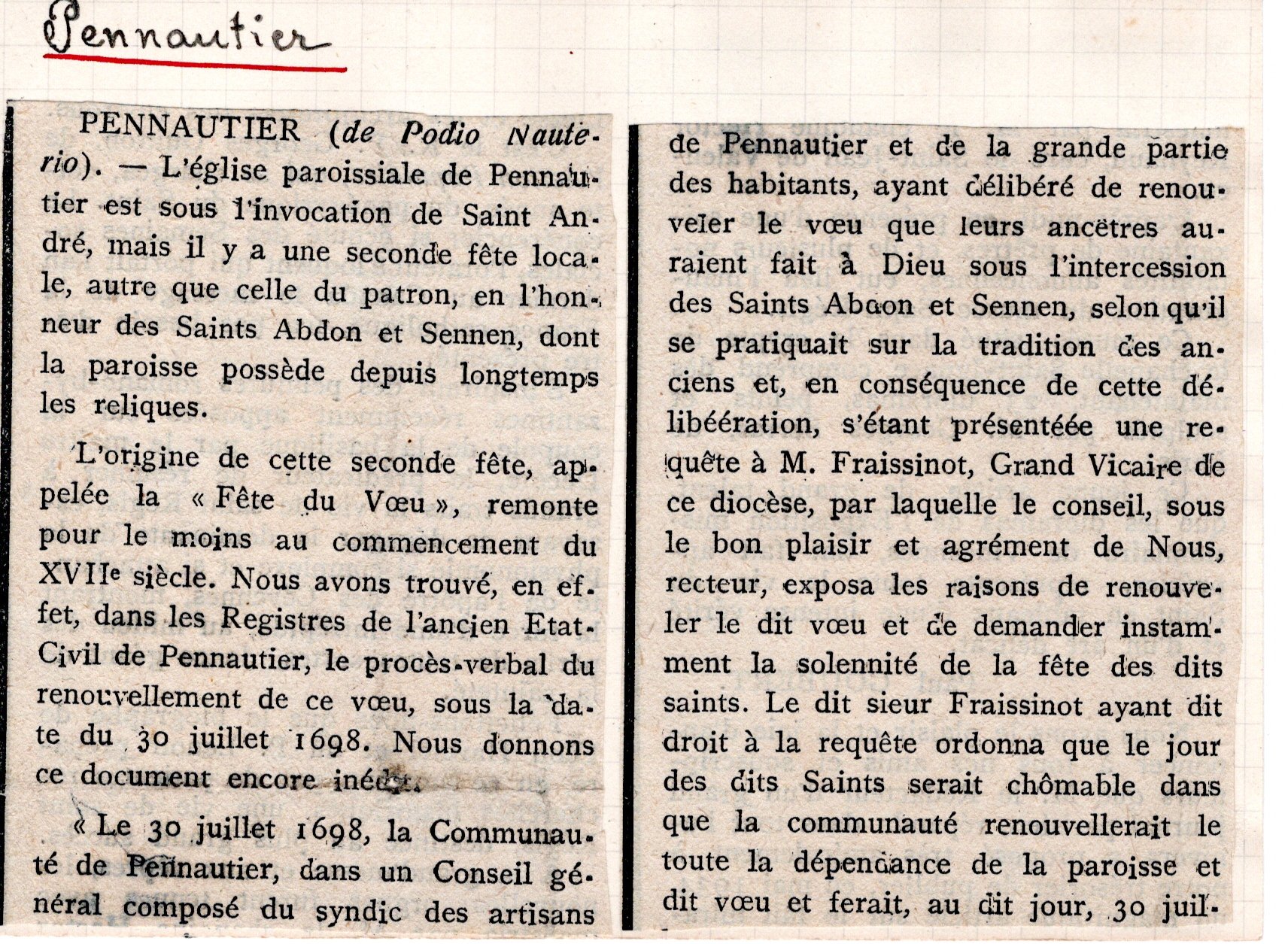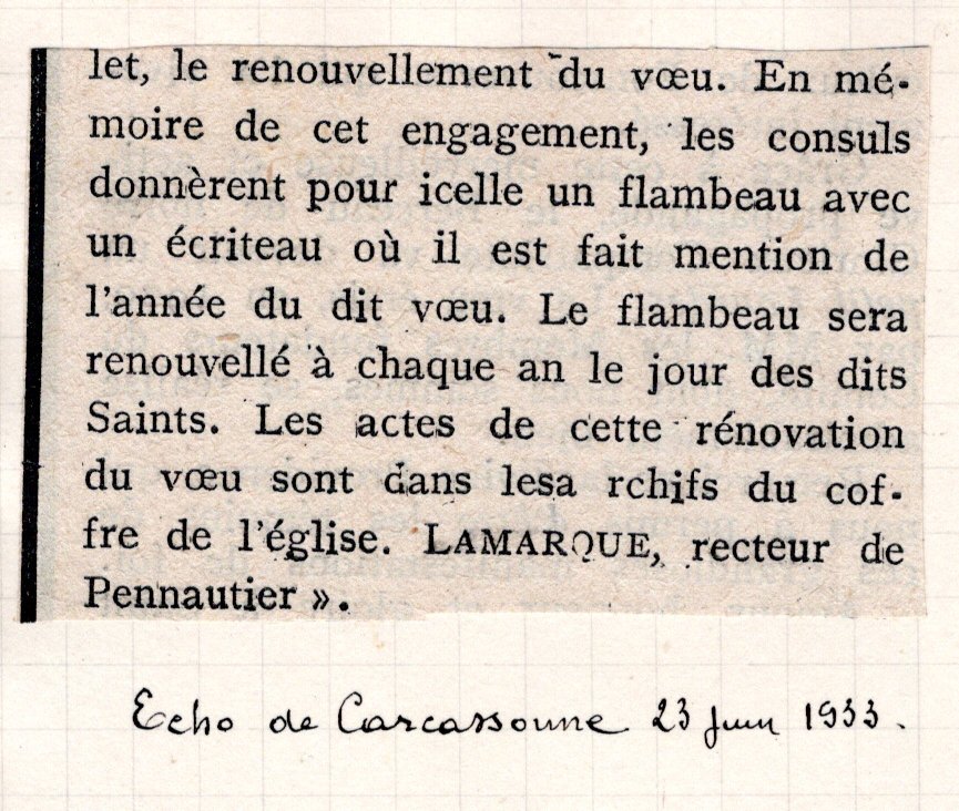 | Pennautier et Paretlongue | Courrent P. | Pennautier, Paretlongue | 1930 | T. XXXIV | p. 41 | |