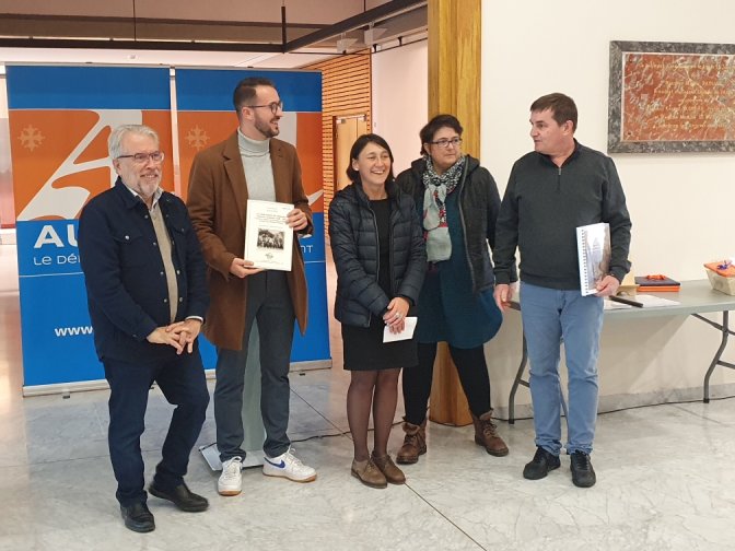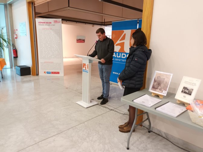 La remise des prix, initialement prévue dans le hall du Conseil départemental, a été déplacée dans le hall des Archives départementales de l’Aude. Elle s’est déroulée le 15 décembre 2022 en présence d’une quarantaine de personnes, dont Hervé Baro, vice-président du Conseil départemental de l’Aude, du personnel des Archives, de membres du jury et des représentants de plusieurs associations audoises : la Société d’études scientifiques de l’Aude représentée notamment par Michel Dauzat et Laure Viguier, l’Académie des arts et des sciences de Carcassonne représentée par sa secrétaire Arlette Moulin, Patrimoine-vallées du Cabardès représenté par Maurice Picarel, Le Centre lauragais d’études scientifiques représenté par Michel Dauzat son président et Serge Pacull son trésorier, Le Souvenir français-délégation de l’Aude, représenté par Monsieur Gérard Collin. En raison de l’interruption accidentelle des liaisons ferroviaires ce jour-là, plusieurs personnes n’ont pu être présentes et se sont fait excuser, dont M. Peytavie, président de la Société d’études scientifiques de l’Aude.