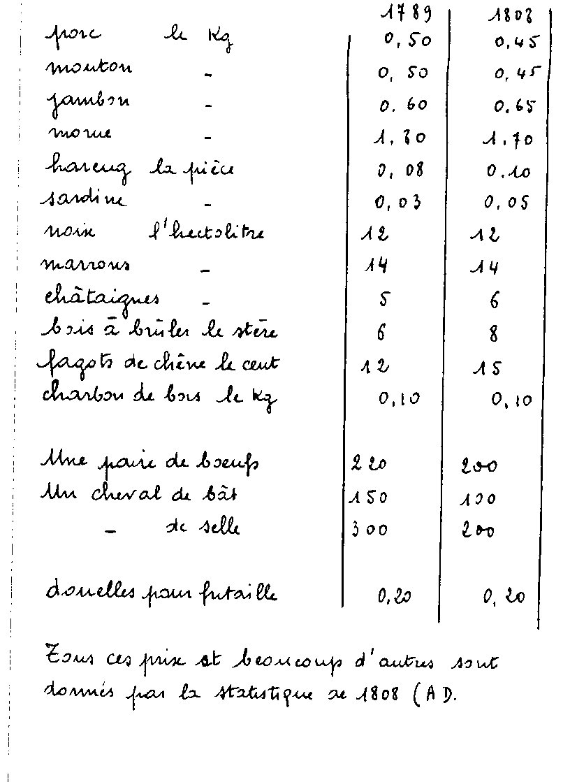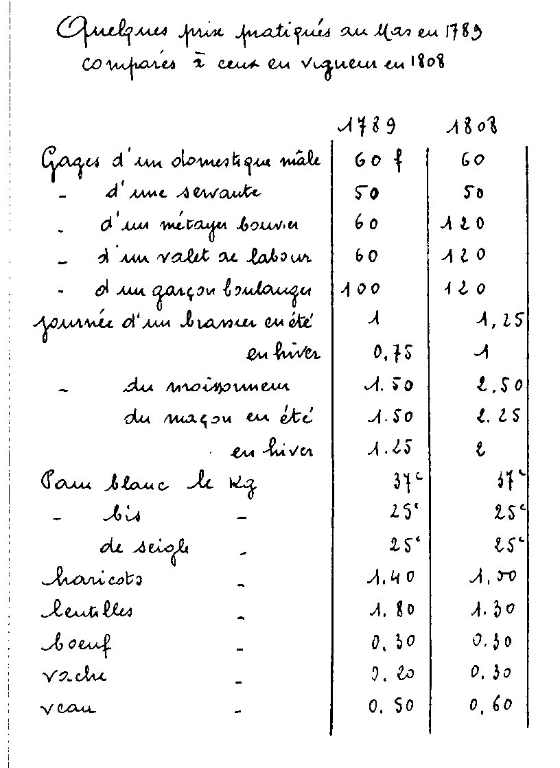 Accueil > La bibliothèque > Documents de la bibliothèque numérisés accessibles sur ce site > L’histoire du Mas-Cabardès de Costeplane J. et P. > Quelques prix pratiqués au Mas en 1789