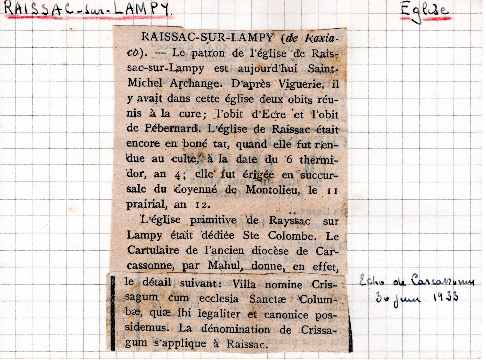 Accueil > Informations par lieu (communes, autres) > Communes dont le nom commence par R > Raissac-sur-Lampy