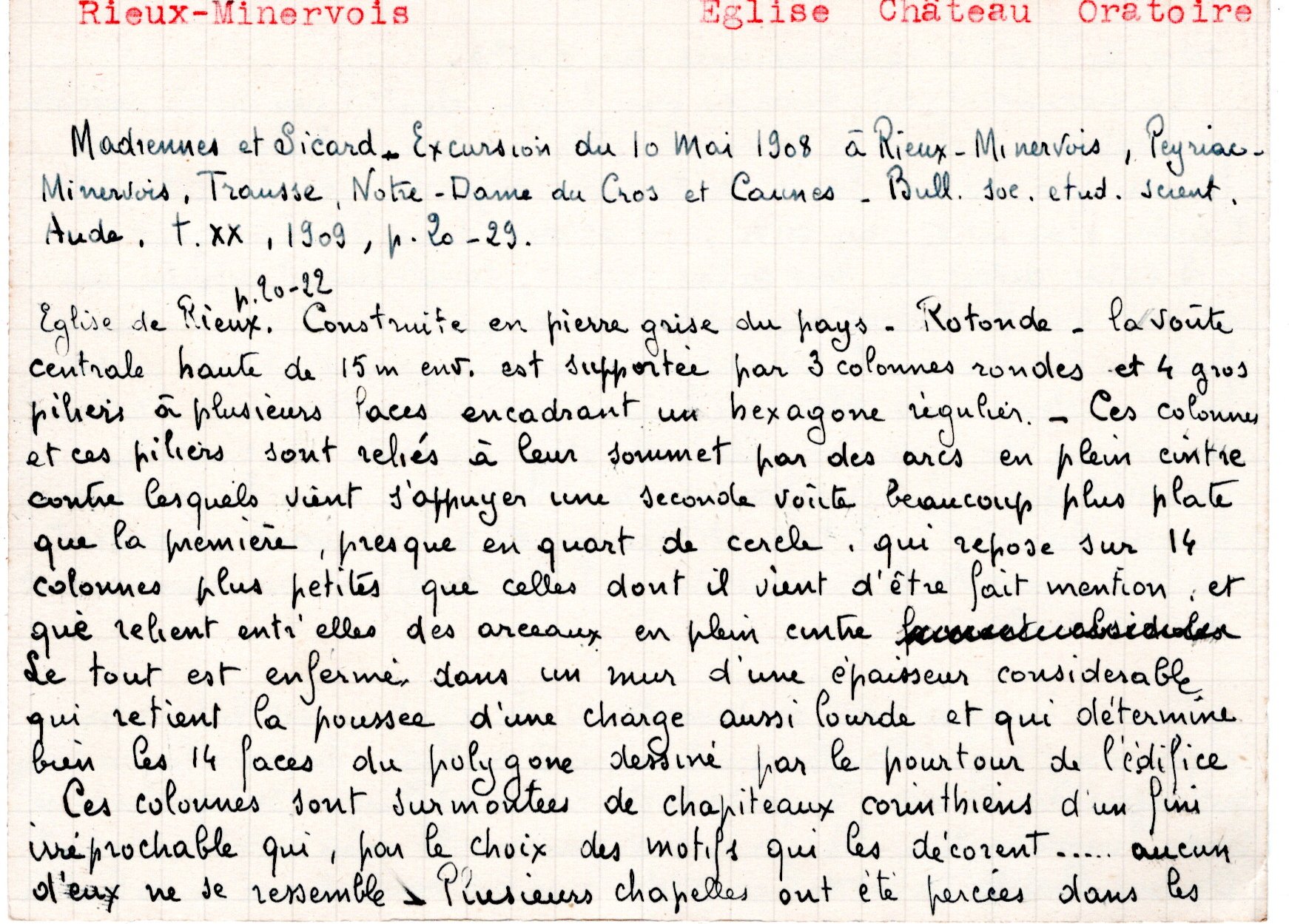 | Rieux-Minervois, Peyriac, Trausse. Excursion. | Sicard G. | Rieux-Minervois, Peyriac, Trausse | Excursion | 1909 | T. XX | p. 20 |