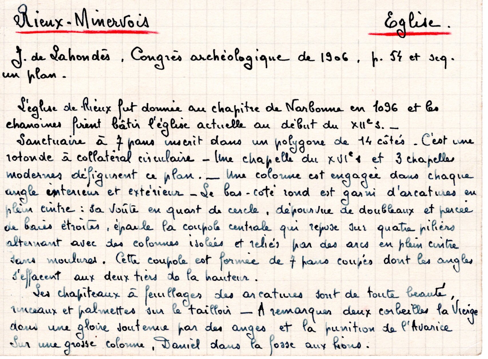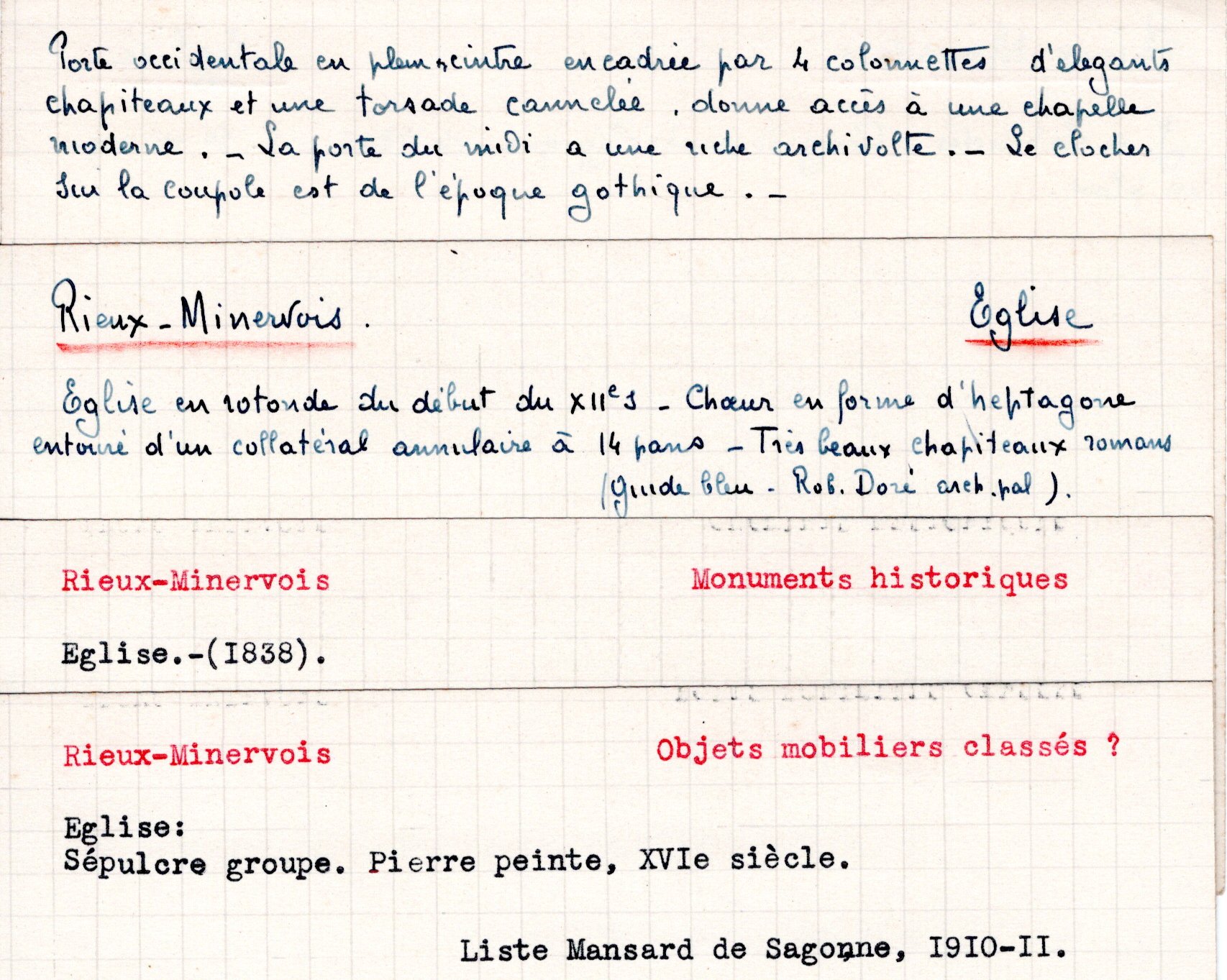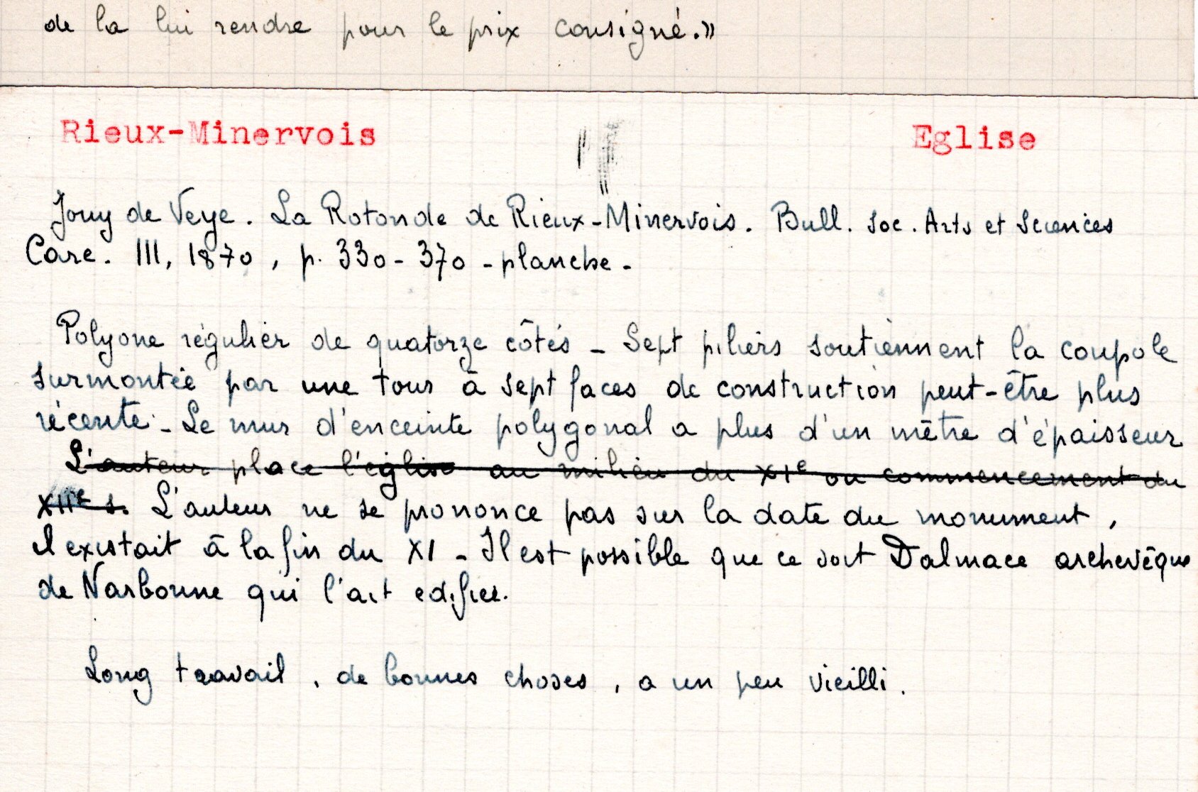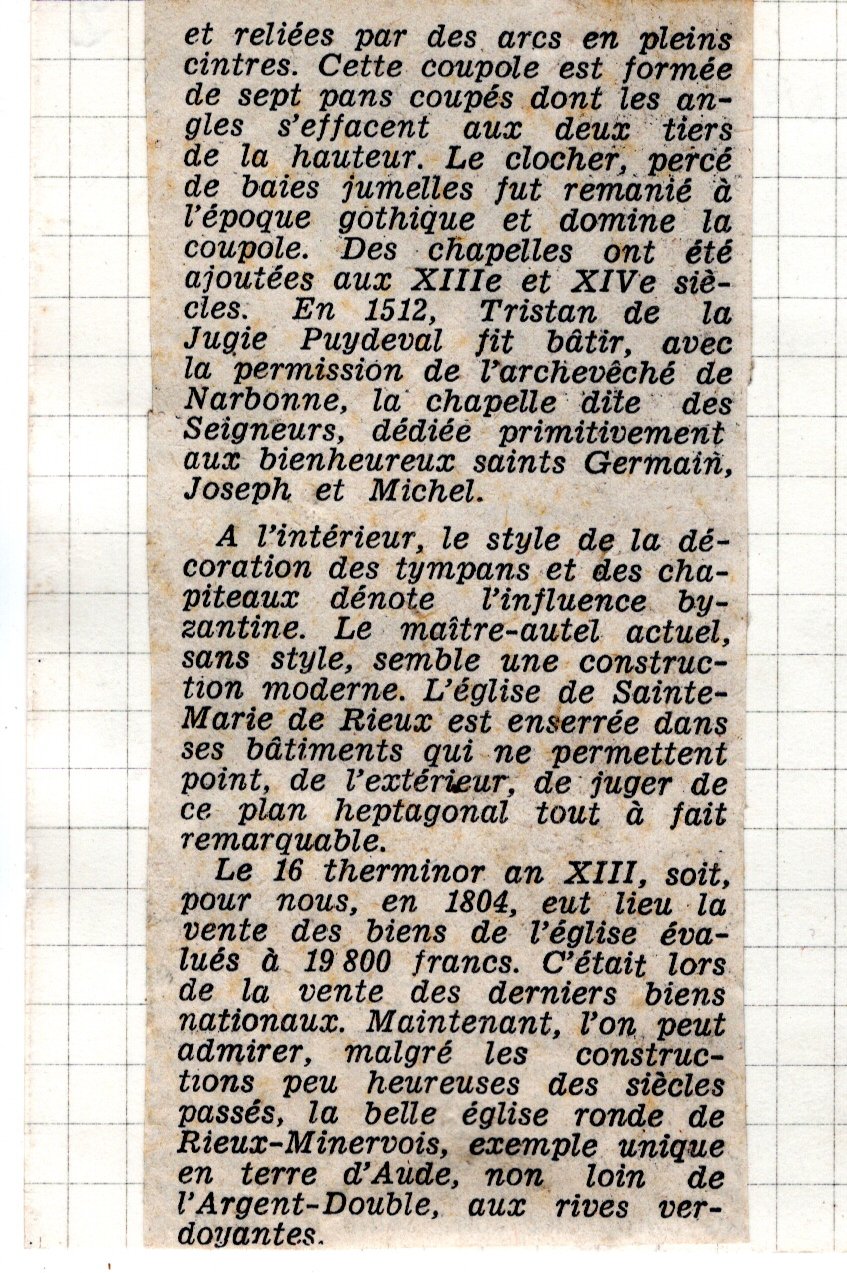 | Eglise de Rieux-Minervois (note et photo) | Esparseil R. | Rieux-Minervois | Architecture religieuse | 1944 | T. XLVII | p. LVIII |