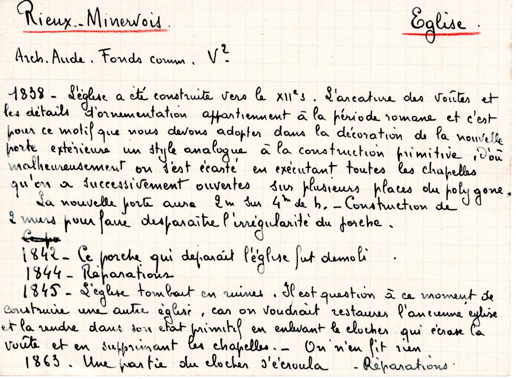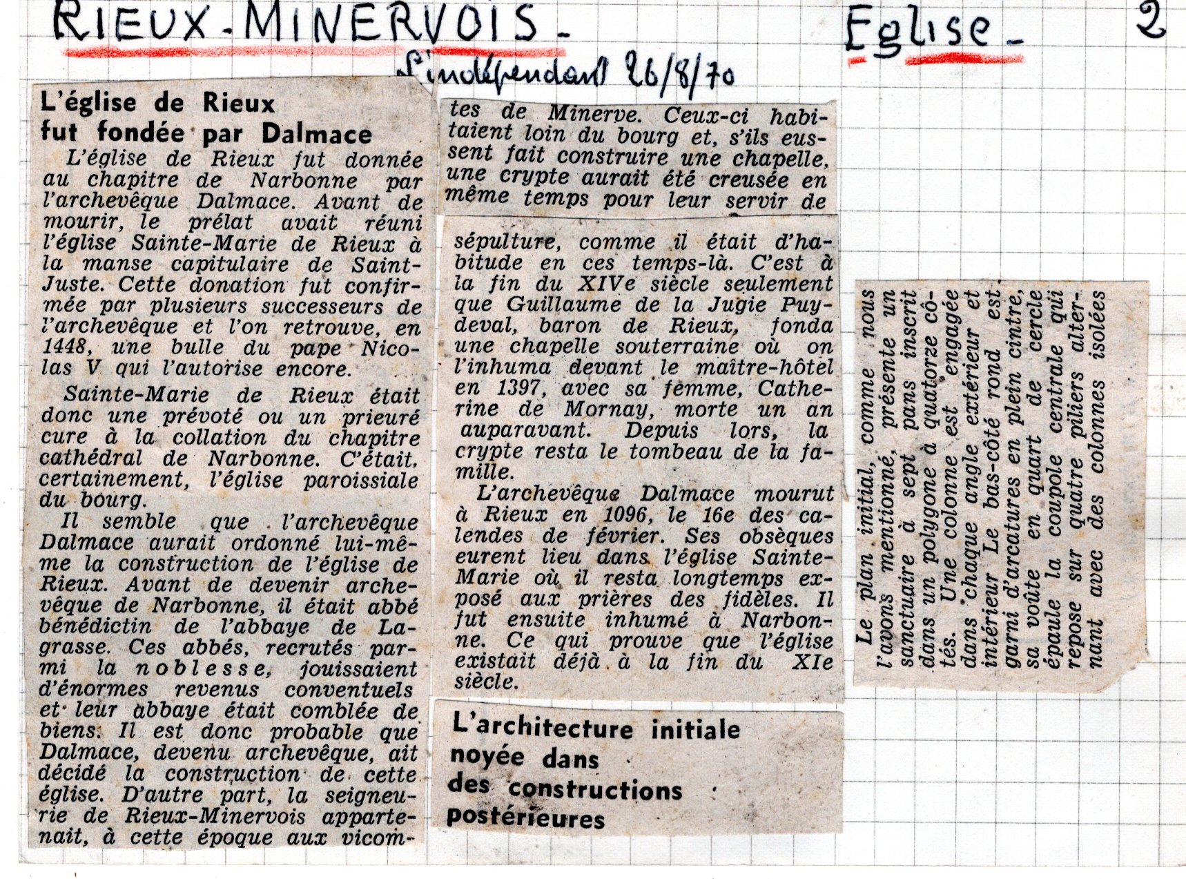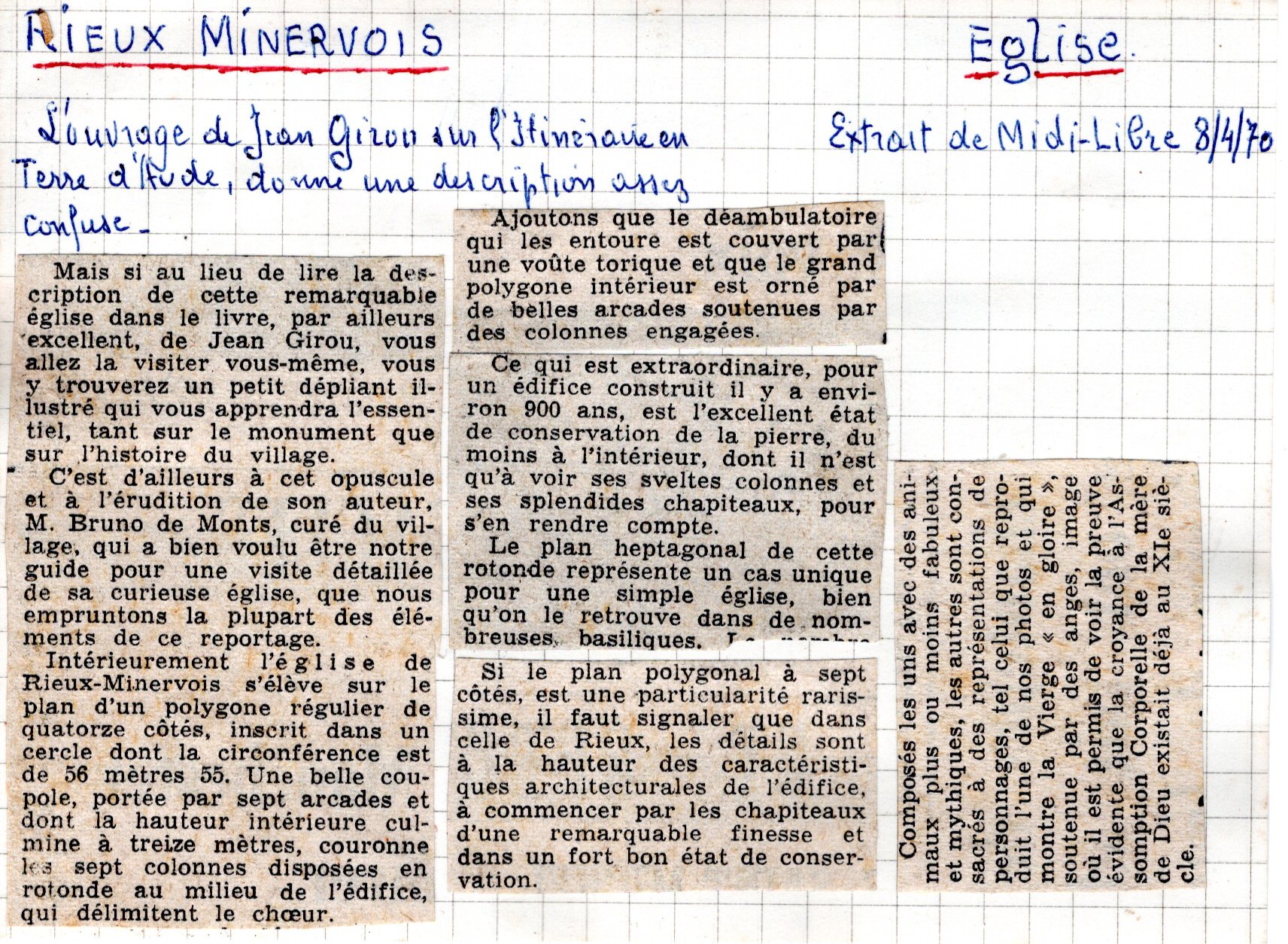 | Eglise de Rieux-Minervois (note et photo) | Esparseil R. | Rieux-Minervois | Architecture religieuse | 1944 | T. XLVII | p. LVIII |