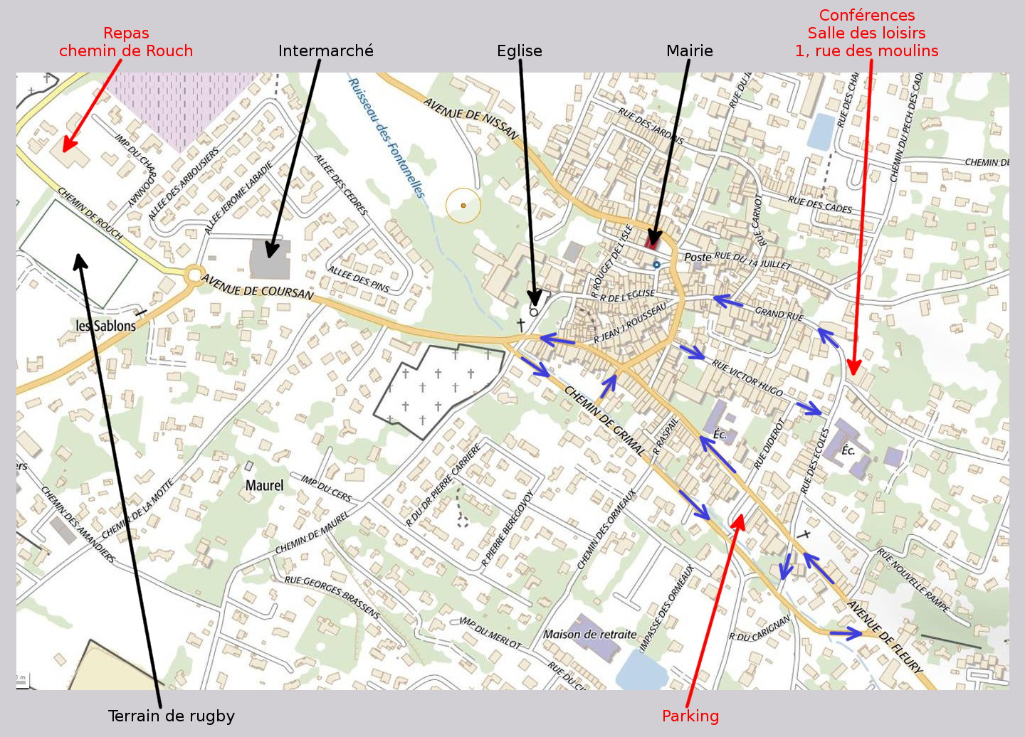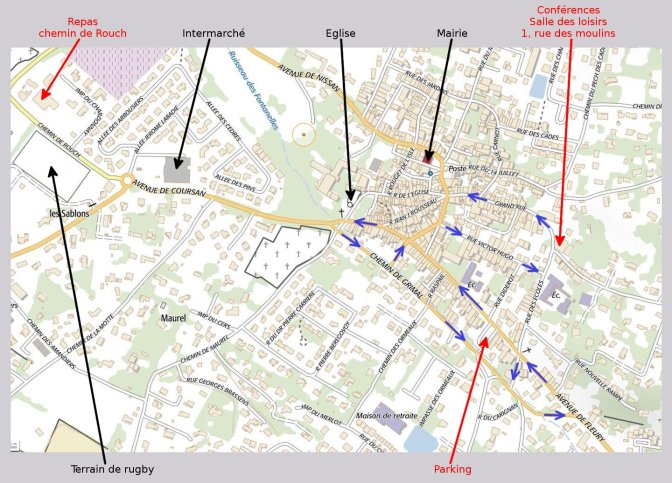 - 12 h 00 : Départ pour la salle mise à notre disposition par la mairie pour un repas pris en commun.