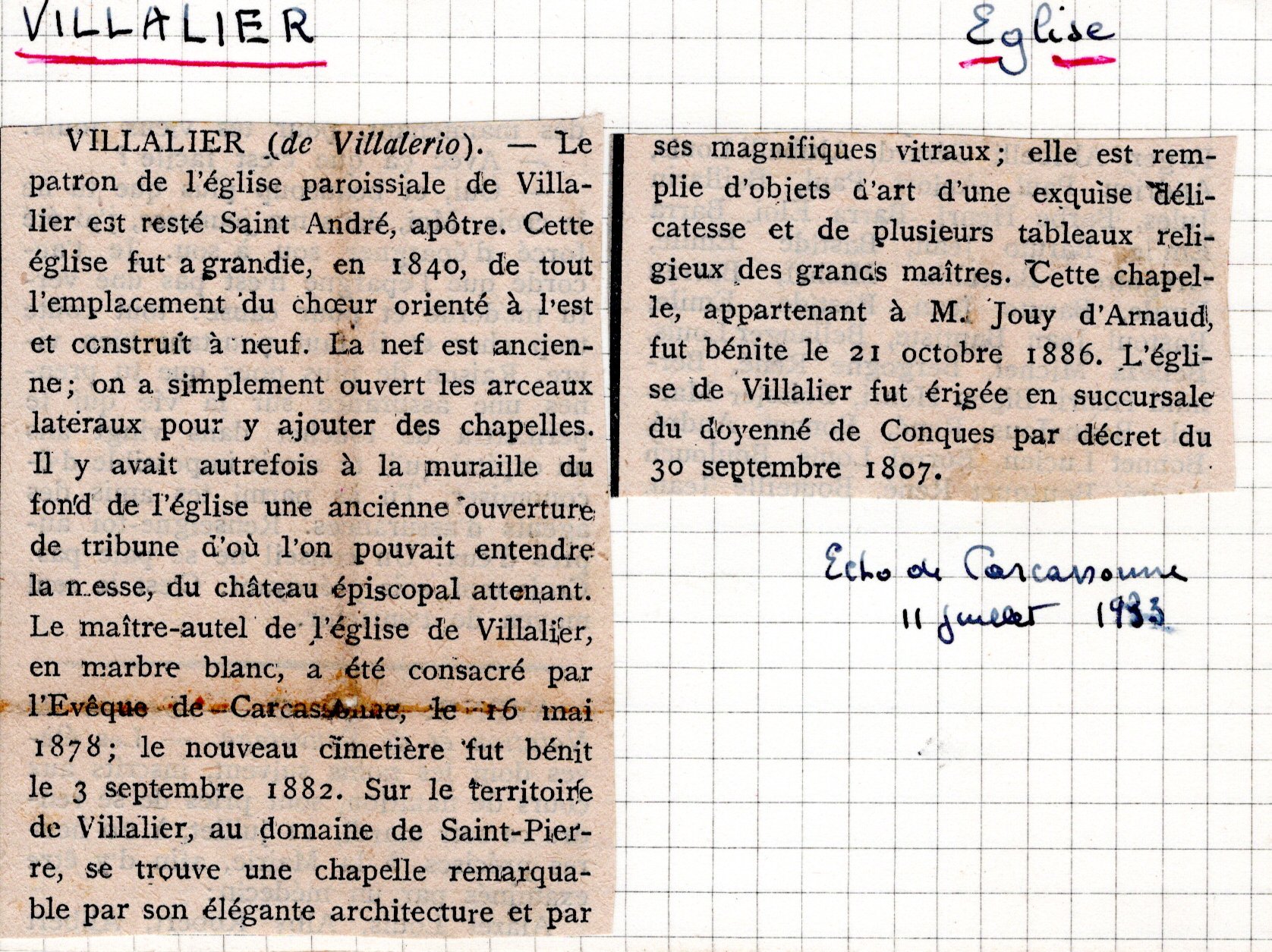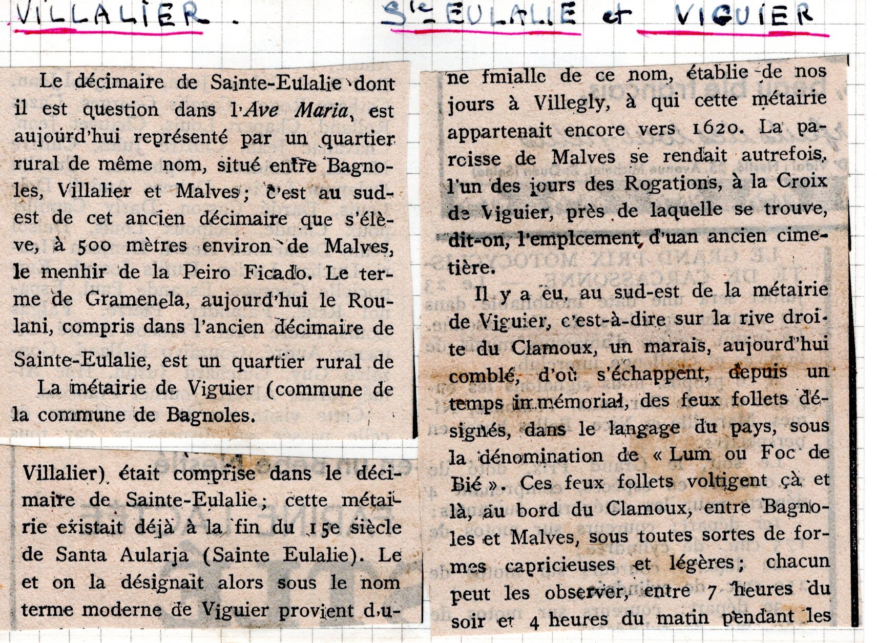 | Un puits entre Villalier et Villegly | Blanc | Villalier - Villegly | Archéologie | 1957 | T. LVIII | p. 41 |