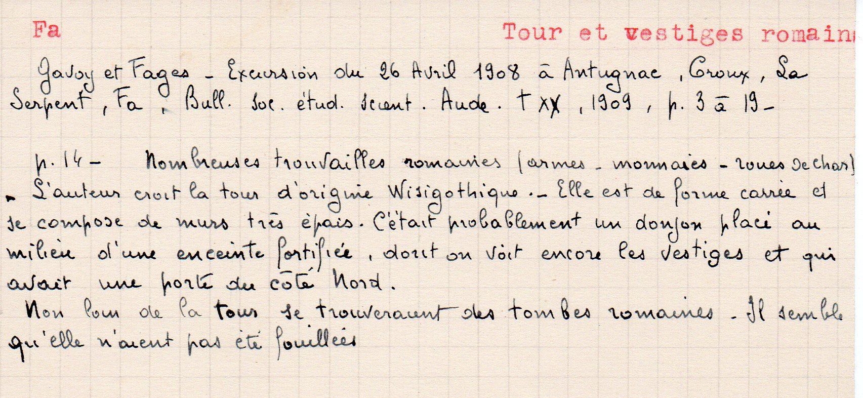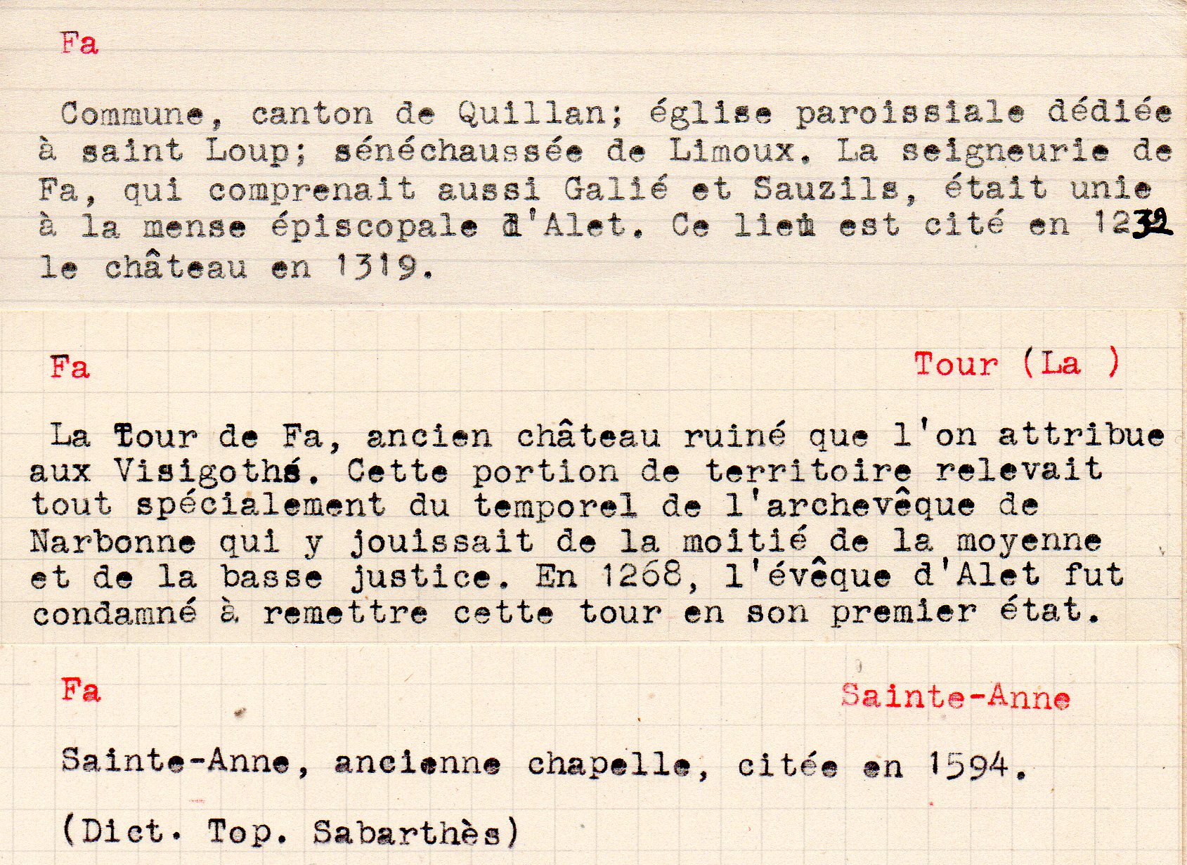 | Histoire de Fa | Fourié J. | Fa | Histoire | 1977 | T. LXXVII | p. 28 |