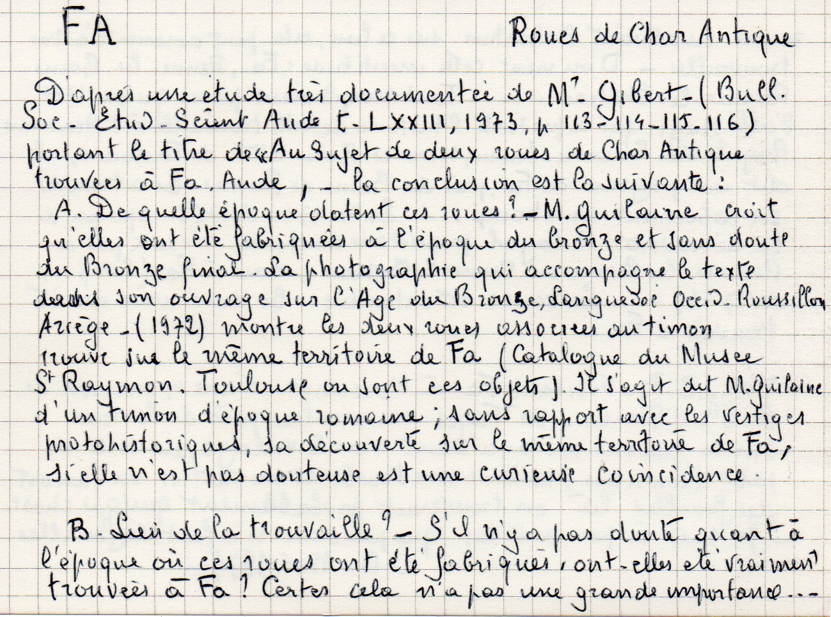 | Au sujet de deux roues de char antique | Gibert U. | Fa | Archéologie | 1973 | T. LXXIII | p. 113 |