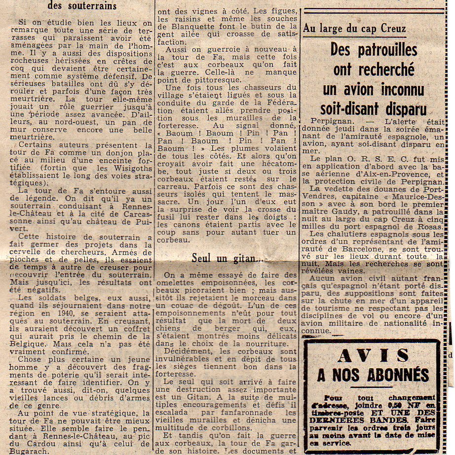 | Fa, Espéraza, Couiza. (Excursion). | Fages A., Courrent P. | Fa, Espéraza, Couiza | Excursion | 1928 | T. XXXII | p. 45 |